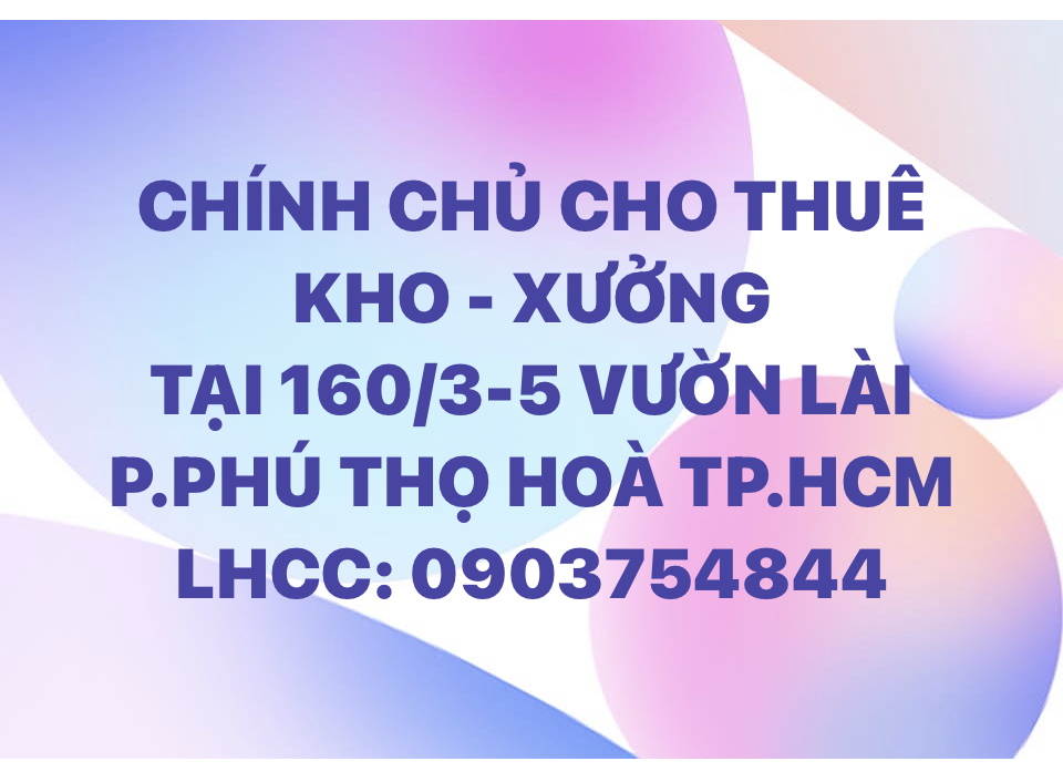 CHÍNH CHỦ CHO THUÊ KHO - XƯỞNG VƯỜN LÀI...