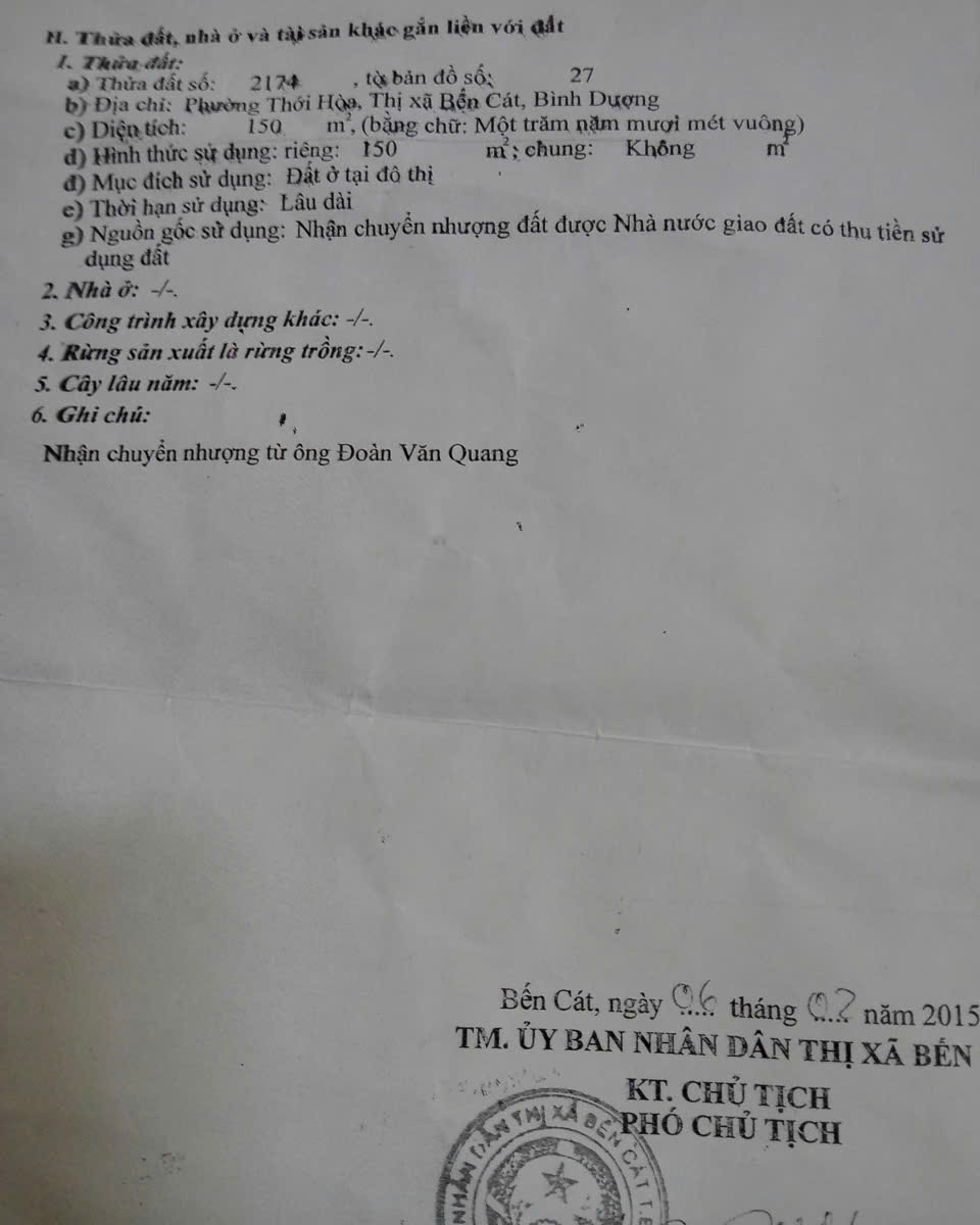 ĐỊA ĐIỂM: - Thị Xã Bến Cát - Bình Dương
