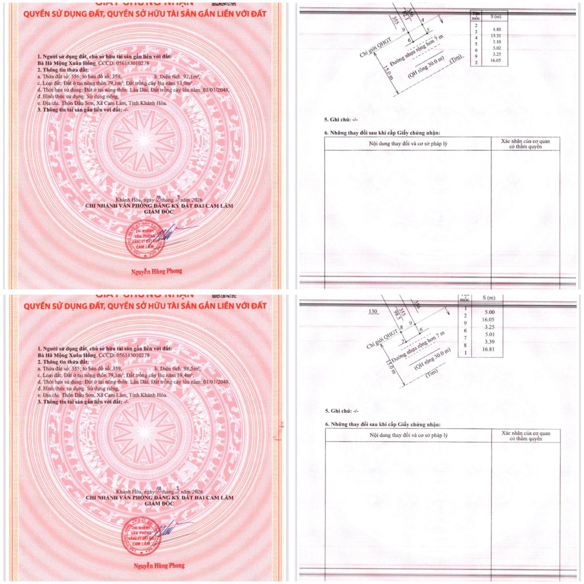 CHÍNH CHỦ CẦN BÁN 02 LÔ ĐẤT MẶT TIỀN QL1A THÔN DẦU SƠN - XÃ CAM LÂM - KHÁNH HOÀ